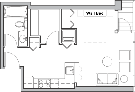 in studio and entry, convenient and roomy in-suite